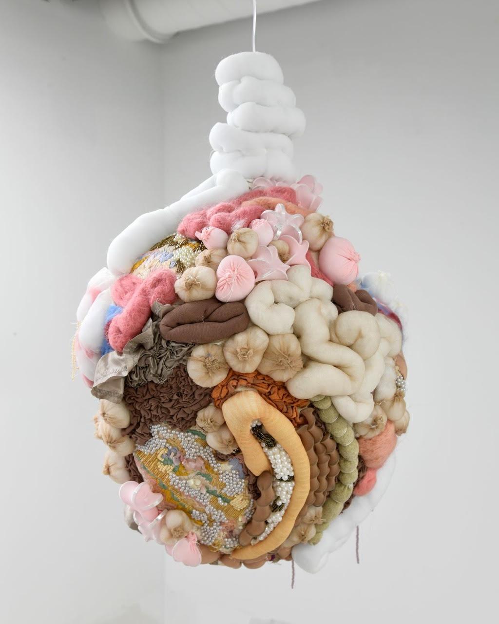 hand needle felt, styrofoam, plastic, yarn, synthetic hair, toothpicks, beads, thread